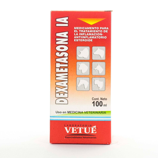 | Dosificación | Caninos y Felinos: (alergia, procesos inflamatorios y dermatosis): 0,09 a 0,2 mg/kg de peso vivo por día. (0.045 a 0.1 ml de producto por Kg pv/día) La dosis puede ser repetida de 3 a 5 días. Equinos y Bovinos: (alergia y procesos inflamatorios): 0,05 a 0,2 mg/kg de peso vivo por día. (0.01 a 0.1 ml de producto por Kg pv/día). Bovinos: (cetosis): 6,6 a 26,6 mg/animal/día (3,3 a 13.3 ml de producto) . Caninos, Felinos, Bovinos, Equinos y Porcinos: (shock séptico): 0,66 a 6,6 mg/kg de peso vivo. (0.33 a 3.3 ml de producto por Kg/pv). Caninos: (edema cerebral): intramuscular 4 mg/kg de peso vivo por día. (2 ml de producto por Kg pv/día) Bovinos: intramuscular 0.066 mg/kg pv (0.033 ml de producto/kg pv), dosis única dentro de las dos últimas semanas de gestación. Ovinos: intramuscular 0.2 mg/kg pv/día (0.1 ml de producto/kg pv/día), de 1 a 5 días dentro de última semana de gestación. El criterio profesional y la gravedad del caso determinan variaciones en las dosis de referencia, la frecuencia y duración del tratamiento. Contraindicaciones: Restricciones de uso: |