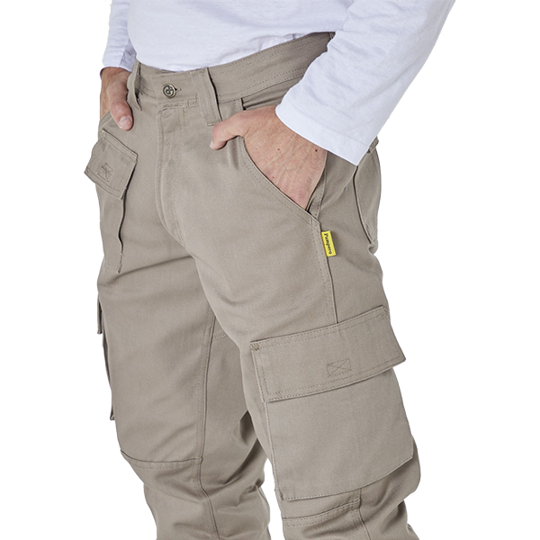 Un pantalón resistente y cómodo por su diseño y confección en gabardina 100 % Algodón. Ideal para largas jornadas de trabajo en la industria o el campo. Cuenta con bolsillos súper prácticos y seguros con tapa y velcro.